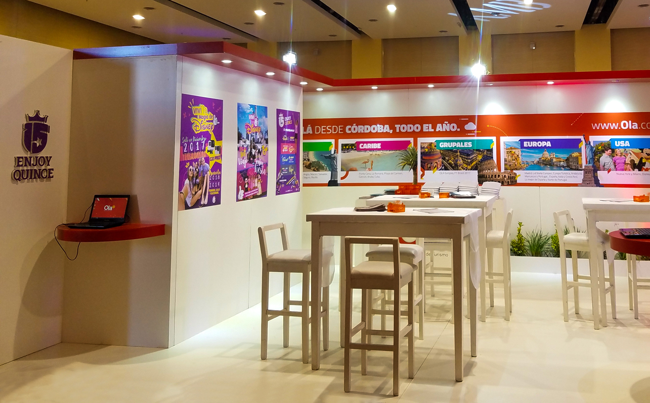 En cada evento del rubro, acompañamos a Ola Mayorista de Turismo en su objetivo por destacar desarrollando stands innovadores diseñados específicamente para cada feria.