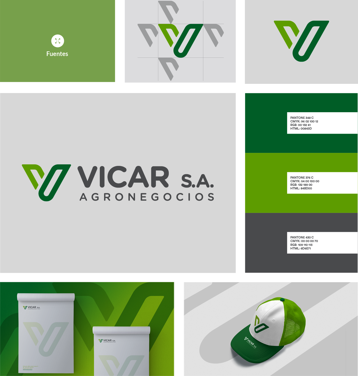 Una vez presentada la investigación, se pasó a la etapa gráfica. Los lineamientos del estilo visual fueron en línea con los colores que usa la industria agropecuaria para que quien vea el logo le remita a este rubro. El logo se centra en la letra V, sin necesidad de tanta simetría para mostrar una imagen bien orgánica que refleja un brote.